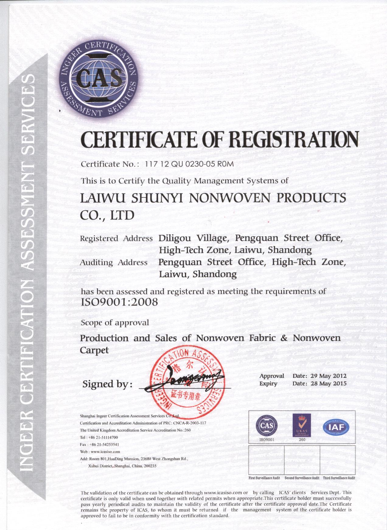 萊蕪順意無紡制品有限公司位于山東省萊蕪市高新區(qū),地處京滬高速公路東出口,40分鐘車程可達(dá)濟(jì)南遙墻國(guó)際機(jī)場(chǎng)、2小時(shí)可達(dá)青島港。交通運(yùn)輸便利。